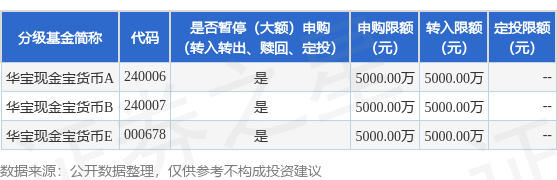 本站消息盈为国际,6月20日华宝基金管理有限公司发布《华宝现金宝货币市场基金调整机构投资者通过部分代销机构大额申购(含定投及转换转入)金额上限的公告》。公告中提示,为保护基金份额持有人利益,自2025年6月20日起华宝现金宝货币市场基金调整机构投资者通过部分代销机构大额申购(含定投及转换转入)金额上限,申购、转换转入上限金额为5000.0万元,下属分级基金调整明细如下: