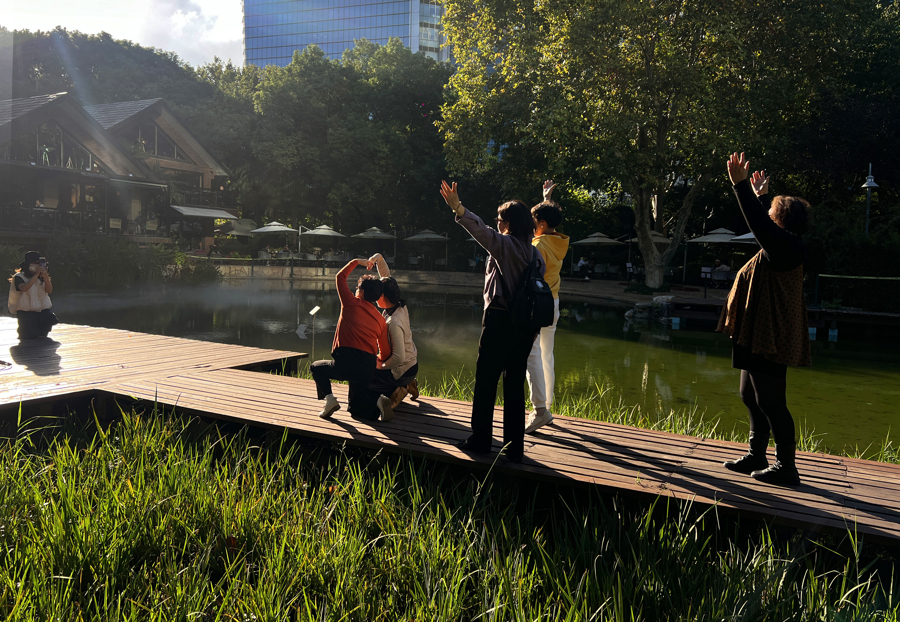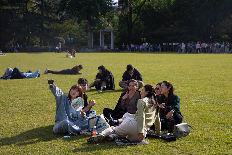 孩子们成群结队地来到公园;上班族也趁着午休沐浴阳光;银发族更是相约户外拍照打卡财汇盈,享受秋光。